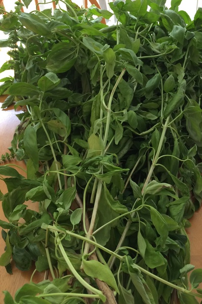 Each spring I plant a variety of herbs. I start with small plants that I’ve picked up at local nurseries. Except for basil – this I grow from seed. This year’s harvest was one of the best I’ve ever had. My basil plants were about three feet tall with large wonderful leaves.