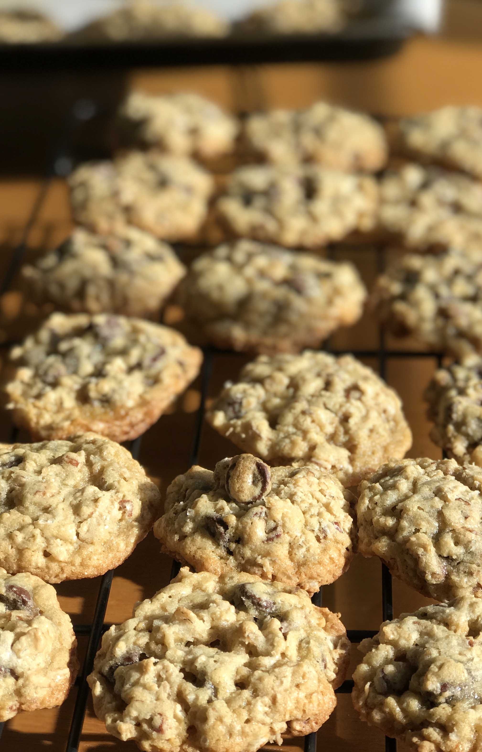 I used to make a few different kinds but then I realized that while people liked my other cookies, they LOVED these Chocolate Chip-Pecan-Oatmeal Cookies. So why not give people what they love?