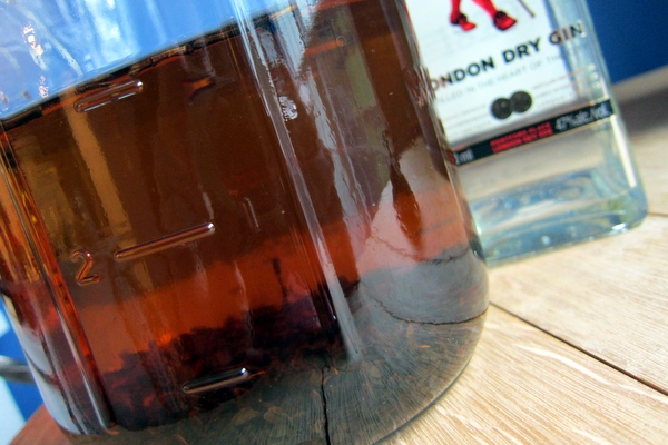 • Pour tea infused gin back into the original gin bottle.