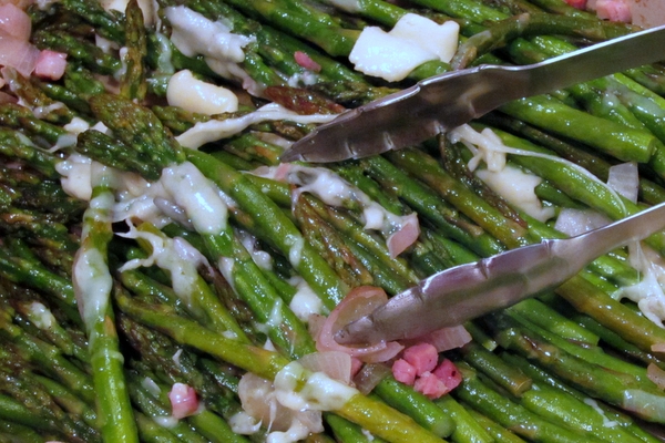 Roasted Asparagus with Pancetta, Shallots and Asiago
