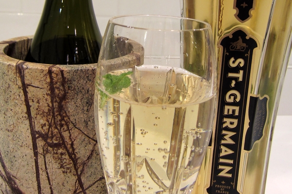 - Pour St. Germain liqueur into a Champagne flute. Add sparkling wine until glass is full. Top with a mint leaf.